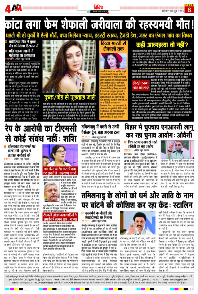 शेफाली की मौत ने एक बार फिर इंडस्ट्री में चमकते चेहरों के पीछे छुपे अंधेरे को उजागर कर दिया है। शैफाली पहली ऐसी महिला कलाकार नहीं है जिनकी रहस्मयी मौत से बालीवुड स्तब्ध है। इससे पहले दिव्या भारती, श्रीदेवी जैसे कलाकारों की भी रहस्मयी मौत हुई हैं। बड़ा सवाल यही है कि क्या यह एक दुखद दुर्घटना है या फिर इसके पीछे कोई गहरी साज़िश है? क्या पराग त्यागी और शेफाली के बीच घरेलू कलह इस त्रासदी की वजह बनी, या घर के ही किसी अन्य सदस्य ने विश्वासघात किया? इन तमाम सवालों के जवाब आने वाले कुछ दिनों में मिल सकते हैं। लेकिन तब तक शैफाली के चाहने वालों और इंडस्ट्री के लिए यह एक ऐसी अपूर्ण कहानी है, जो अधूरी रह गई।