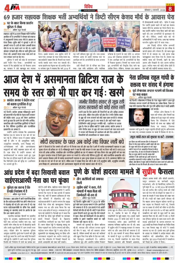 नई दिल्ली। कांग्रेस अध्यक्ष मल्लिकार्जुन खरगे को प्रधानमंत्री नरेंद्र मोदी के नेतृत्व वाली सरकार की केंद्रीय बजट 2026 को लेकर आलोचना करते हुए कहा कि इसमें देश की गंभीर आर्थिक, सामाजिक और राजनीतिक चुनौतियों से निपटने के लिए नीतिगत दूरदर्शिता और राजनीतिक इच्छाशक्ति का अभाव है।