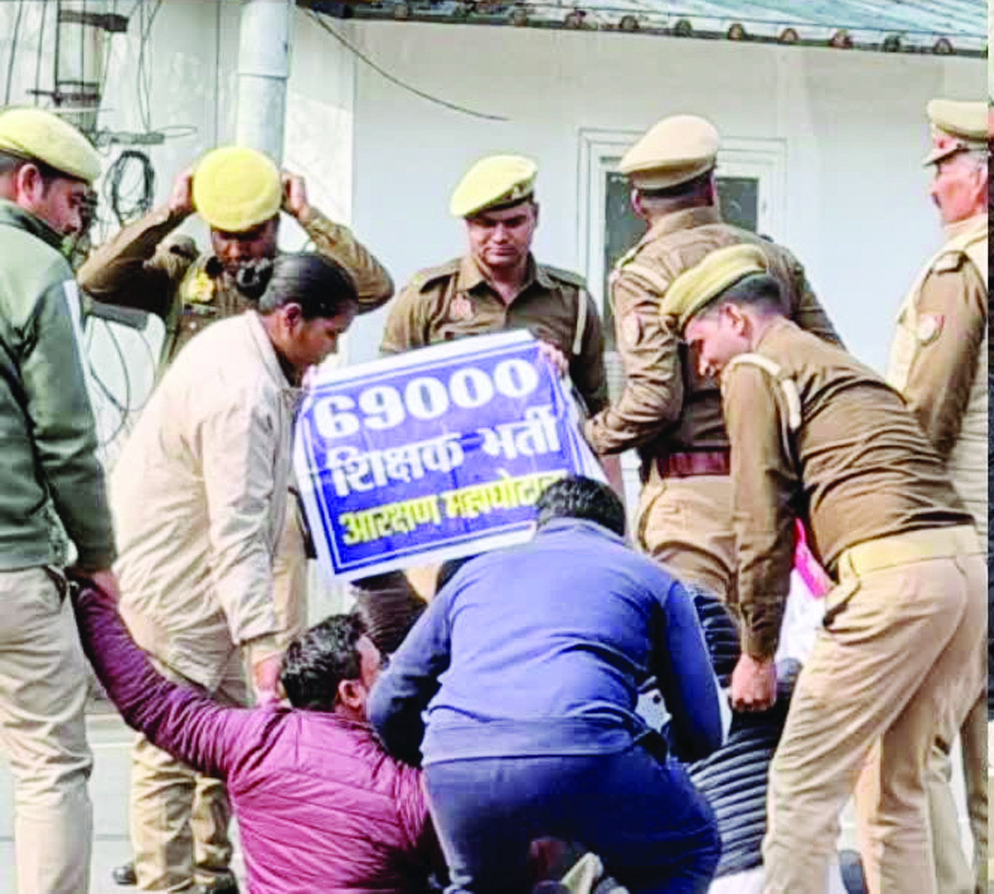 69 हजार सहायक शिक्षक भर्ती अभ्यर्थियों ने डिप्टी सीएम केशव मौर्य के आवास घेरा