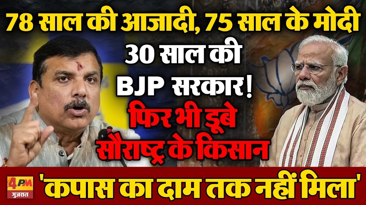 इस दौरान संजय सिंह नें मोदी सरकार पर जमकर निशाना साधा और कहा कि 78 साल की आज़ादी, 75 साल के मोदी जी और 30 साल की गुजरात में भाजपा सरकार, मगर फिर भी सौराष्ट्र के लाखों किसानों के खेत हर साल केमिकल युक्त पानी में डूब जाते हैं.. कपास के किसानों को फसल का दाम नहीं मिलता.. मोदी जी की सैटेलाइट में किसानों के मूंगफली के खेत दिखाई नहीं पड़ते..