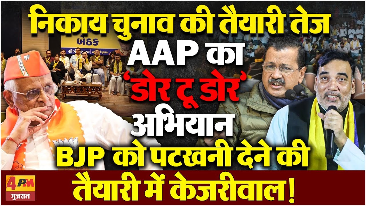 AAP गुजरात में अपनी पैठ बढ़ाने के लिए सक्रिय है.. जुलाई 2025 में अरविंद केजरीवाल ने घोषणा की कि AAP गुजरात में डोर टू डोर अभियान चलाएगी.. जहां हर घर में कम से कम पांच बार कार्यकर्ता जाएंगे.. पार्टी ने आम नागरिकों को चुनाव लड़ने के लिए आवेदन मंगवाए.. और PDF फॉर्म व्हाट्सएप पर उपलब्ध कराए.. गुजरात AAP अध्यक्ष इसुदान गढ़वी और महासचिव मनोज सोरठिया ने युवाओं को आगे आने का आह्वान किया.. फरवरी 2025 में AAP ने कई जगहों पर डोर टू डोर प्रचार किया.. जैसे जामनगर, जूनागढ़ और पाटण में कंपेन किया गया.. सुरेंद्रनगर की थान नगरपालिका में गोपाल इटालिया ने कार्यकर्ताओं के साथ अभियान चलाया..