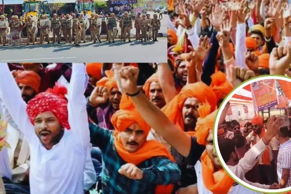 आगरा में करणी सेना के ‘रक्त स्वाभिमान सम्मेलन’ में हंगामा, तलवारें-डंडे लहराते नजर आए कार्यकर्ता