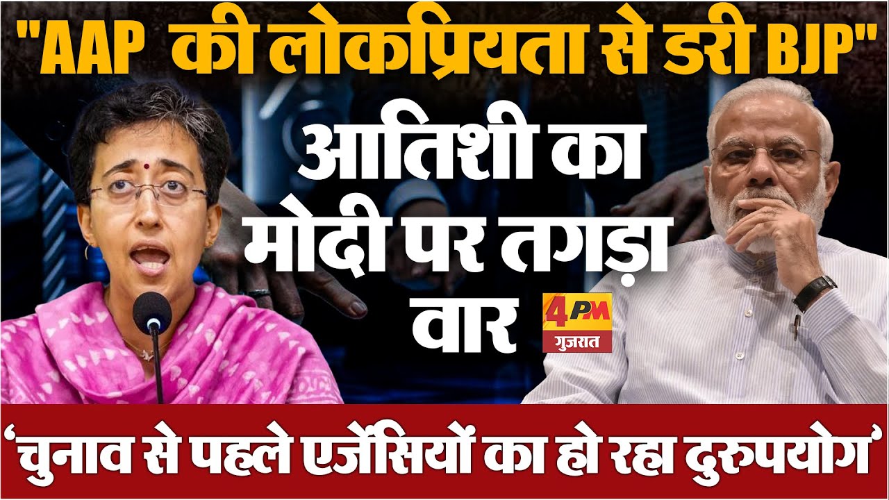4पीएम न्यूज नेटवर्कः गुजरात की सियासत में इन दिनों तूफान मचा हुआ है……. आम आदमी पार्टी की बढ़ती लोकप्रियता…… और हाल के उप-चुनावों में मिली जीत ने सत्तारूढ़ भारतीय जनता पार्टी की नींद उड़ा दी है……. दिल्ली की पूर्व मुख्यमंत्री और AAP की वरिष्ठ नेता आतिशी ने BJP पर गंभीर आरोप लगाए हैं……. उनका दावा है कि BJP, AAP की बढ़ती ताकत से घबराकर केंद्रीय जांच एजेंसियों का दुरुपयोग कर रही है……. आतिशी ने यह भी कहा कि BJP, AAP नेताओं पर झूठे मुकदमे दर्ज करवाकर उनकी आवाज को दबाने की कोशिश कर रही है……. यह सियासी जंग 2027 के गुजरात विधानसभा चुनाव से पहले और तेज होने के आसार हैं……