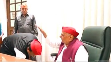 चुनाव के नतीजे आने के बाद पहली बार पिता मुलायम सिंह से मिले अखिलेश यादव, पैर छूकर लिया आशीर्वाद