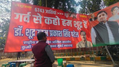 गर्व से कहो हम शूद्र हैं.. लखनऊ में सपा ऑफिस के बाहर लगा बैनर