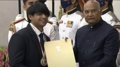 गोल्ड मेडल विजेता नीरज चोपड़ा को मेजर ध्यानचंद खेल रत्न पुरस्कार से सम्मानित किया गया।