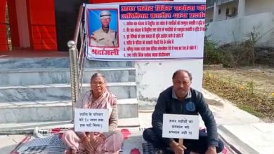 शहीद विवेक सक्सेना स्मारक पर शहीद परिवार का अनिश्चितकालीन धरना प्रदर्शन जारी