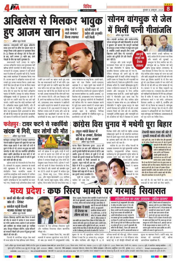 समाजवादी पार्टी (सपा) के राष्ट्रीय अध्यक्ष अखिलेश यादव अब मुरादाबाद नहीं बल्कि बरेली एयरपोर्ट से सीथे रामपुर गए। जानकारी के अनुसार, प्रशासन ने उन्हें बरेली शहर में प्रवेश की अनुमति नहीं दी है, जिसके बाद उनके कार्यक्रम में बदलाव किया गया है। आजम खान ने अखिलेश यादव को गले लगाते हुए उनका स्वागत किया। इसके बाद दोनों नेता एक ही कार से घर के लिए रवाना हो गए। बैठक से पहले, आज़म खान ने साफ़ तौर पर कहा कि वह सिर्फ़ अखिलेश यादव से मिलेंगे। रामपुर के सांसद मौलाना मोहिबुल्लाह नदवी से मुलाक़ात के बारे में पूछे जाने पर उन्होंने कहा कि वह उन्हें नहीं जानते। उन्होंने कहा कि कोई कार्यक्रम नहीं है। अखिलेश यादव मुझसे मिलेंगे, और मैं सिर्फ़ उनसे ही मिलूँगा। दोनों नेताओं के बीच यह मुलाकात ऐसी अफवाहों के बीच हो रही है कि रामपुर के पूर्व सांसद मायावती की बसपा में शामिल हो सकते हैं। हालाँकि, उन्होंने इन दावों का खंडन करते हुए कहा कि वह समाजवादी पार्टी में बने रहेंगे। इस बारे में पूछे जाने पर उन्होंने कहा कि हमारे पास चरित्र नाम की एक चीज़ है। चरित्र का मतलब यह नहीं है कि हम किसी पद पर हैं या नहीं; इसका मतलब है कि लोग हमें प्यार और सम्मान देते हैं। और हम बिकाऊ नहीं हैं, हमने यह साबित कर दिया है। 18 सितंबर को, इलाहाबाद उच्च न्यायालय ने क्वालिटी बार ज़मीन हड़पने के मामले में आज़म खान को ज़मानत दे दी। इस मामले में रामपुर के सिविल लाइंस थाने में उनके और अन्य के खि़लाफ़ एक प्राथमिकी दर्ज की गई थी। प्राथमिकी के बाद, खान ने ज़मानत के लिए उच्च न्यायालय का रुख़ किया। इससे पहले, खान को एक विशेष एमपी-एमएलए अदालत ने 17 साल पुराने एक मामले में बरी कर दिया था, जिसमें सडक़ जाम करने और सार्वजनिक संपत्ति को नुकसान पहुँचाने का मामला शामिल था। इसके अलावा, 10 सितंबर को, इलाहाबाद उच्च न्यायालय ने रामपुर की डूंगरपुर कॉलोनी से निवासियों को कथित तौर पर जबरन बेदखल करने से जुड़े एक अलग मामले में आज़म खान को ज़मानत दे दी। पिछले कुछ वर्षों में आज़म खान के ख़िलाफ़ विभिन्न आपराधिक आरोपों से संबंधित कुल 16 प्राथमिकी दर्ज की गई हैं।