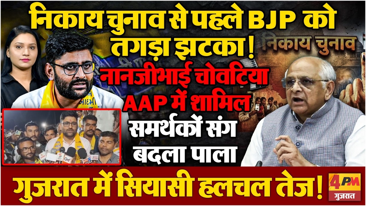गुजरात में निकाय चुनाव से पहले सियासी माहौल गरमा गया है... भाजपा नेता नानजीभाई चोवटिया ने अपने समर्थकों के साथ...