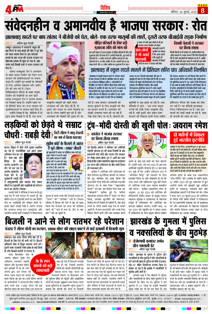 जयपुर। झालावाड़ में सरकारी स्कूल की छत गिरने से सात बच्चों की मौत ने पूरे देश को गहरा सदमा दिया है। इस दर्दनाक हादसे के बाद राज्य की भाजपा सरकार पर चौतरफा हमला भी शुरू हो गया है। बाप समेत कई विपक्षी दलों ने भजन सरकार को घेरा है।