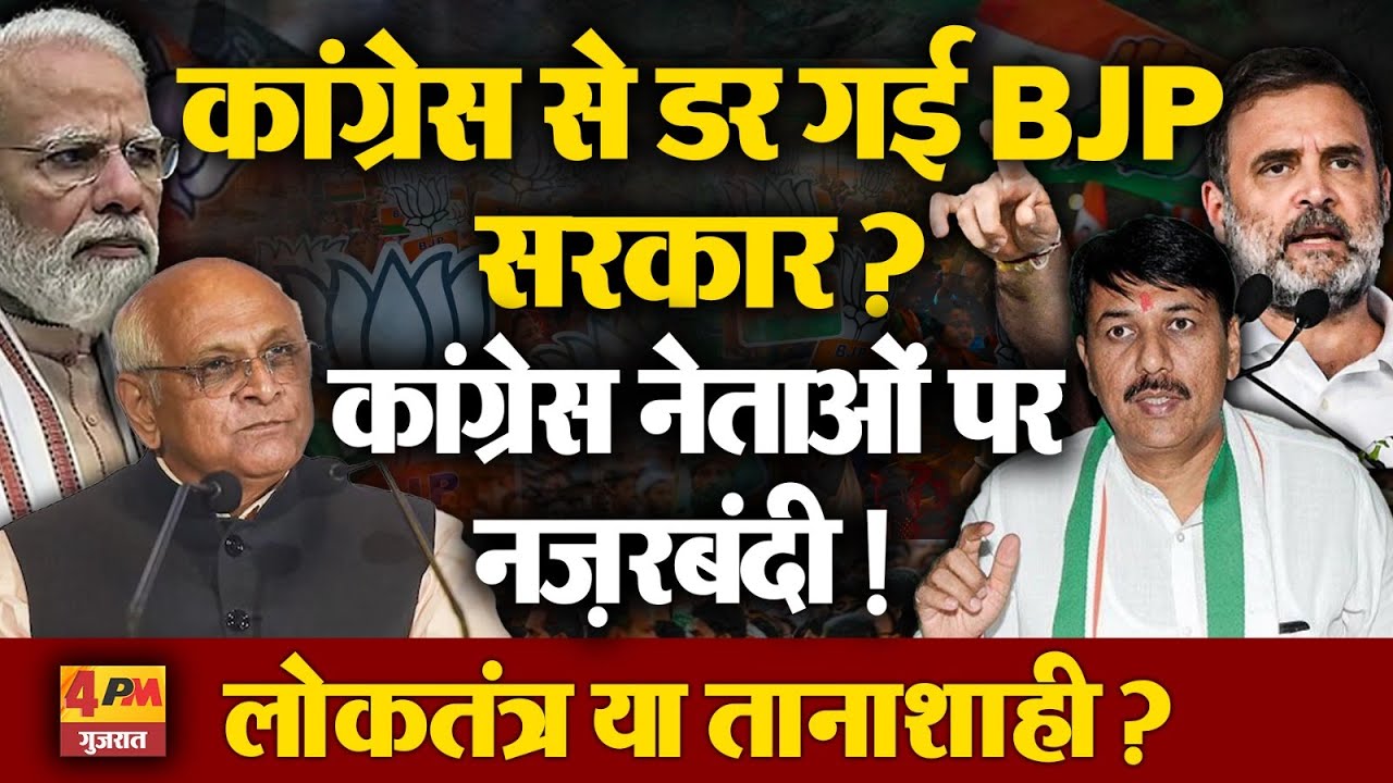 4पीएम न्यूज नेटवर्कः भारत की राजनीति में हमेशा से ही सत्ता और विपक्ष के बीच टकराव होता रहा है….. लेकिन हाल ही की एक घटना ने पूरे देश को चौंका दिया है….. प्रधानमंत्री नरेंद्र मोदी गुजरात के दो दिवसीय दौरे पर हैं…… जहां वे विभिन्न कार्यक्रमों में हिस्सा ले रहे हैं….. इसी दौरान गुजरात पुलिस ने कई कांग्रेस नेताओं को नजरबंद कर दिया….. या यूं कहें कि हिरासत में ले लिया…… कांग्रेस ने इसे BJP सरकार की तानाशाही का सबूत बताते हुए जोरदार हमला बोला है…… कांग्रेस का कहना है कि BJP सरकार कांग्रेस से इतनी डर गई है कि वह विरोध की आवाज को दबाने के लिए लोकतंत्र के सिद्धांतों को ताक पर रख रही है……
