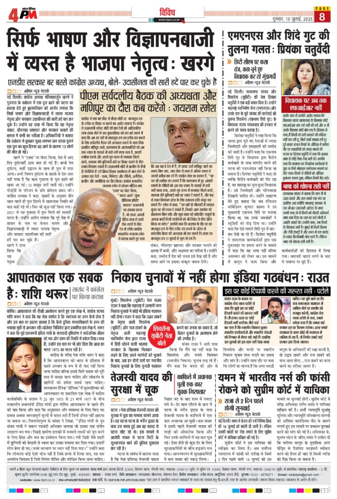 कांग्रेस ने एक बार फिर से पीएस मोदी पर मानसून सत्र के एजेंडा पर विचार न करने का आरोप लगाया है। कांग्रेस ने प्रधानमंत्री नरेन्द्र मोदी की पांच देशों की आधिकारिक यात्रा संपन्न होने के बाद बृहस्पतिवार को तंज भरे लहजे में कहा कि अब वह चाहें तो मानसून सत्र का एजेंडा तय करने के लिए सर्वदलीय बैठक की अध्यक्षता करने के साथ हिंसा प्रभावित मणिपुर जाने, पहलगाम के आतंकवादियों को अब तक न्याय के कठघरे में क्यों नहीं लाया गया है, इसकी समीक्षा करने और अपने गृह राज्य में लगातार गिरते-ढहते, नाकाम होते बुनियादी ढांचे पर विचार करने के लिए समय निकाल सकते हैं। प्रधानमंत्री मोदी ने ब्राजील के रियो डी जेनेरियो में 17वें ब्रिक्स शिखर सम्मेलन में भाग लेने के अलावा पांच देशों – घाना, त्रिनिदाद और टोबैगो, अर्जेंटीना, ब्राजील और नामीबिया का दौरा किया। कांग्रेस महासचिव जयराम रमेश ने सोशल मीडिया मंच ‘एक्स’ पर पोस्ट किया, ‘‘भारत अपने ‘सुपर प्रीमियम फ्रीक्वेंट फ्लायर’ प्रधानमंत्री का स्वागत करता है, जो शायद अगली विदेश यात्रा से पहले तीन हफ्तों के लिए देश में रहेंगे। कांग्रेस महासचिव जयराम रमेश ने कटाक्ष करते हुए कहा कि अब जब वे देश में हैं, तो शायद उन्हें मणिपुर जाने का समय मिल जाए, जहां लोग दो साल से अधिक समय से उनकी प्रतीक्षा कर रहे हैं। कांग्रेस नेता का कहना है, ‘‘वह यह भी समीक्षा कर सकते हैं कि पहलगाम में हुए आतंकी हमलों के दोषियों को अब तक न्याय के कठघरे में क्यों नहीं लाया गया, अपने गृह राज्य में लगातार गिरते-ढहते, नाकाम होते बुनियादी ढांचे पर ध्यान दे सकते हैं, और बाढ़ से तबाह हिमाचल प्रदेश के लिए सहायता राशि मंजूर कर सकते हैं।’ रमेश ने कहा, ‘‘वह चाहें तो जीएसटी में व्यापक सुधार पर भी ध्यान दे सकते हैं, जिससे आम उपभोग को प्रोत्साहन मिल सके और कुछ खास बड़े कॉरपोरेट समूहों के अलावा बाकी निजी कंपनियों को भी निवेश के लिए प्रेरित किया जा सके।’’ उन्होंने कहा कि बदलाव के तौर पर वह मानसून सत्र के लिए एजेंडा तय करने के उद्देश्य से सर्वदलीय बैठक की अध्यक्षता भी कर सकते हैं। संसद का मानसून सत्र 21 जुलाई से शुरू हो रहा है।
