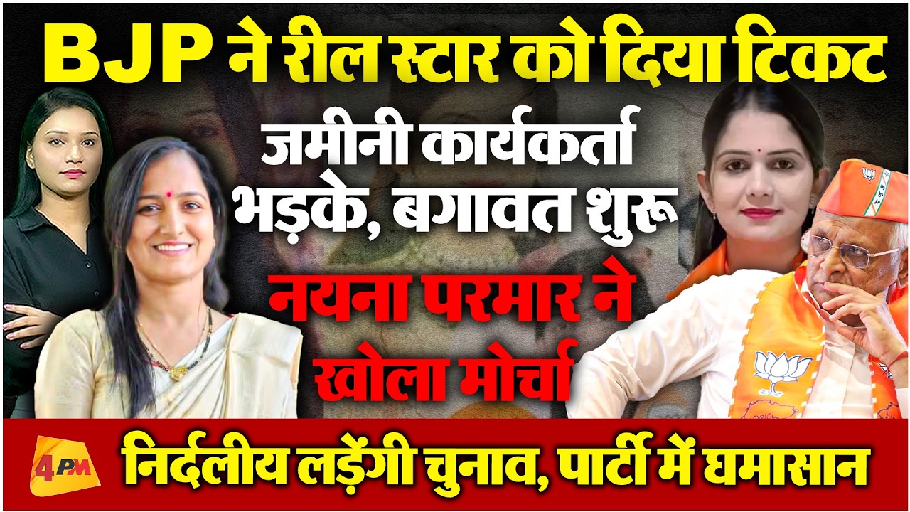 लेकिन टिकट घोषणा के तुरंत बाद पार्टी में बगावत शुरू हो गई.. नयना परमार, जो बीजेपी की पुरानी और समर्पित कार्यकर्ता हैं, काफी नाराज हो गईं.. नयना को पोर सीट का प्रबल दावेदार माना जा रहा था.. और उन्होंने खुलेआम विरोध जताया.. 11 अप्रैल को उन्होंने बीजेपी का खेस पहनकर ममलतदार कार्यालय पहुंचकर.. निर्दलीय नामांकन दाखिल करने की घोषणा की.. नयना ने कहा कि रील वाली अंकिता और रियल वाली मैं.. जनता तय करेगी कि उन्हें क्या चाहिए.. और उन्होंने आरोप लगाया कि टिकट बंटवारे में गड़बड़ी हुई है.. कुछ लोगों ने पैसे लेकर टिकट दिलवाया.. उन्होंने पूर्व जिला बीजेपी अध्यक्ष रसिक प्रजापति का भी नाम लिया.. नयना का कहना है कि अंकिता को पहले से कई पद मिले हुए हैं.. तालुका अध्यक्ष, युवा मोर्चा उपाध्यक्ष.. पार्टी की नीति एक व्यक्ति, एक पद का उल्लंघन हो रहा है..