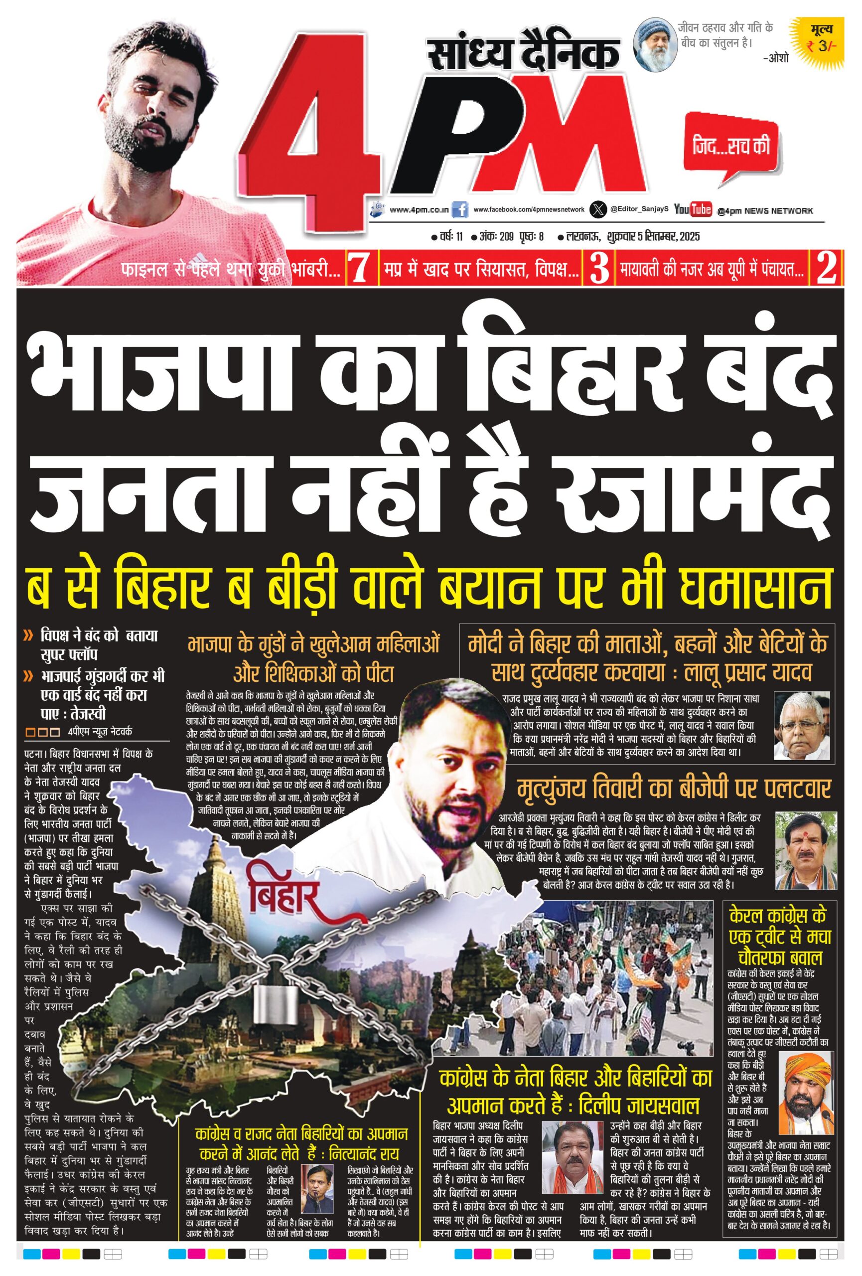 पटना। बिहार विधानसभा में विपक्ष के नेता और राष्ट्रीय जनता दल के नेता तेजस्वी यादव ने शुक्रवार को बिहार बंद के विरोध प्रदर्शन के लिए भारतीय जनता पार्टी (भाजपा) पर तीखा हमला करते हुए कहा कि दुनिया की सबसे बड़ी पार्टी भाजपा ने बिहार में दुनिया भर से गुंडागर्दी फैलाई। एक्स पर साझा की गई एक पोस्ट में, यादव ने कहा कि बिहार बंद के लिए, वे रैली की तरह ही लोगों को काम पर रख सकते थे। जैसे वे रैलियों में पुलिस और प्रशासन पर दबाव बनाते हैं, वैसे ही बंद के लिए, वे खुद पुलिस से यातायात रोकने के लिए कह सकते थे। दुनिया की सबसे बड़ी पार्टी भाजपा ने कल बिहार में दुनिया भर से गुंडागर्दी फैलाई। उधर कांग्रेस की केरल इकाई ने केंद्र सरकार के वस्तु एवं सेवा कर (जीएसटी) सुधारों पर एक सोशल मीडिया पोस्ट लिखकर बड़ा विवाद खड़ा कर दिया है।