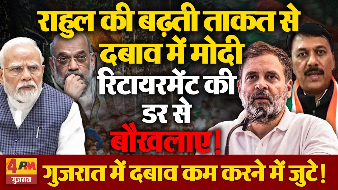 4पीएम न्यूज नेटवर्कः दोस्तों भारतीय राजनीति में पिछले कुछ वर्षों से एक बड़ा बदलाव देखने को मिल रहा है…… जहां एक तरफ प्रधानमंत्री नरेंद्र मोदी और भारतीय जनता पार्टी की सत्ता मजबूत लग रही थी……. वहीं अब कांग्रेस नेता राहुल गांधी की बढ़ती लोकप्रियता….. और उनके आक्रामक रुख से मोदी सरकार पर दबाव बढ़ता जा रहा है…… दो हजार पच्चीस में सितंबर तक राजनीतिक गलियारों में मोदी की रिटायरमेंट की चर्चाएं जोर पकड़ रही हैं……. जबकि गुजरात में बीजेपी की जड़ें हिलती नजर आ रही हैं…… राहुल गांधी ने खुले मंच से मोदी और बीजेपी पर वोट चोरी के आरोप लगाए हैं…… जिससे राजनीतिक माहौल गर्म हो गया है….. तो आज हम इस खबर में विस्तार से चर्चा करेंगे कि कैसे राहुल की ताकत बढ़ रही है…… मोदी पर दबाव क्यों है…… रिटायरमेंट की अफवाहें क्या कहती हैं…… और गुजरात में बीजेपी संकट में क्यों फंसती दिख रही है…..