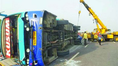 उन्नाव: डबल डेकर बस पलटी, दो यात्रियों की मौत, 25 अन्य घायल