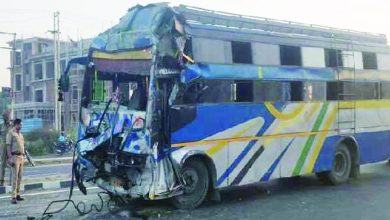 खड़े टैंकर से टकरायी डबल डेकर बस, 40 मजदूर घायल