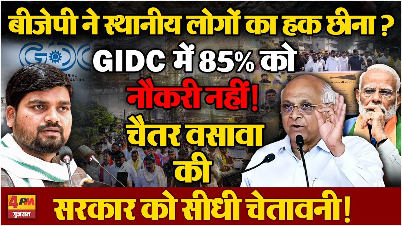 4पीएम न्यूज नेटवर्कः दोस्तों गुजरात के वलसाड जिले के उमरगाम तालुका के दो बड़े औद्योगिक क्षेत्र सरिगाम जीआईडीसी… और दौहेला जीआईडीसी में 1 दिसंबर को हजारों की संख्या में स्थानीय आदिवासी समुदाय के लोग सड़क पर उतर आए.. ये लोग पिछले कई सालों से चले आ रहे एक ही सवाल को लेकर आंदोलन कर रहे हैं.. जिनकी जमीन लेकर जीआईडीसी बनाया गया.. और उनके बच्चों को स्थायी नौकरी क्यों नहीं मिल रही है.. जिसको लेकर स्थानीय आदिवासी समुदाय में काफी नाराजगी है.. वहीं अब आदिवासी समुदाय को आप का साथ मिल गया है.. और आप के फायरब्रांड नेता चैतर वसावा आदिवासियों के मुद्दे जोरःशोर से उठा रहे हैं.. क्योंकि चैतर वसावा भी आदिवासी समुदाय से आते हैं.. और खुलकर सरकार के खिलाफ बोलते हैं और आदिवासी मुद्दों को उठाते हैं.. जिससे आप की साख गुजरात में तेजी से मजूबत हो रही है.. जो बीजेपी और मोदी के लिए किसी सुनामी से कम नहीं है.. चैतर वसावा की रैली मैं लाखों की संख्या में लोग आते हैं… पार्टी के द्वारा कम संख्या में आने की अपील पर भी लोग नहीं मानते हैं.. और भारी संख्या में आते हैं.. जिसको देखकर बीजेपी सरकार की नींव हिल रही है..