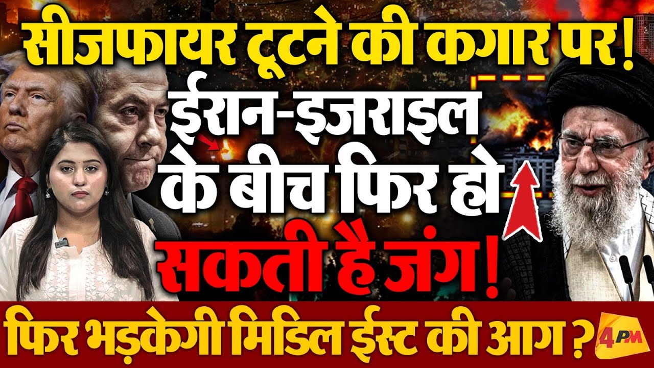 4पीएम न्यूज नेटवर्कः मिडिल ईस्ट पहले से ही तनाव और संघर्ष का केंद्र रहा है……. एक बार फिर युद्ध की आशंका से घिर गया है……. हाल ही में ईरान और इजराइल के बीच हुए सीजफायर के टूटने की खबरें सामने आ रही हैं……. जिसने पूरी दुनिया का ध्यान अपनी ओर खींच लिया है…… 12 दिनों तक चली भीषण जंग के बाद……. अमेरिकी राष्ट्रपति डोनाल्ड ट्रम्प के हस्तक्षेप से दोनों देशों के बीच युद्धविराम की घोषणा हुई थी….. लेकिन अब इस नाजुक शांति के टूटने की आशंका बढ़ रही है…… आज हम इस खबर में इसकी पृष्ठभूमि, कारण, प्रभाव और भविष्य की संभावनाओं पर विस्तार से चर्चा करेंगे……