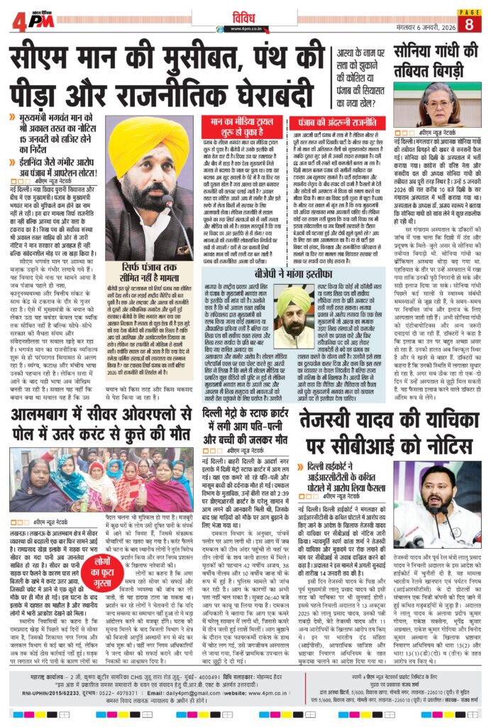 नई दिल्ली। नया विवाद पुरानी सियासत और बीच में एक मुख्यमंत्री। पंजाब के मुख्यमंत्री भगवंत मान की मुश्किलें कम होने का नाम नहीं ले रहीं। इस बार मामला सिर्फ राजनीति का नहीं बल्कि आस्था पंथ और सत्ता के टकराव का है। सिख पंथ की सर्वोच्च संस्था श्री अकाल तख्त साहिब की ओर से जारी नोटिस ने मान सरकार को असहज ही नहीं बल्कि संवेदनशील मोड़ पर ला खड़ा किया है।