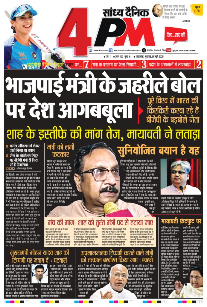 नई दिल्ली। मध्य प्रदेश सरकार में मंत्री विजय शाह का बयान पर पूरे देश में बवाल मच गया है। बयान में ऐसे शब्दों का प्रयोग किया गया है जिसे लेकर विपक्ष, सैन्य विशेषज्ञ और आम जनता के बीच तीव्र प्रतिक्रियाएं सामने आ रही है। बसपा प्रमुख मायावती ने तत्काल शाह पर कार्रवाई करने की बात कही है। वहीं मुस्लिम राष्ट्रीय मंच ने भी विजय शाह को मंत्रीमंडल से बर्खस्त कर जेल में डालने की अपील जारी की है। गौरतलब है कि विजय शाह के एक वायरल वीडिया में वह आपेरशन सिंदर को लेकर बात करते हुए सुने जा सकते हैं जिसमें उन्हें यह कहते हुए सुना जा रहा हैं कि जिन्होंने हमारी बेटियों के सिंदूर उजाड़े थे उन्हीं लोगों को उन्हीं की बहन भेजकर उनकी ऐसी-तैसी करवाई। उन्होंने कपड़े उतार-उतार कर हमारे हिन्दुओं को मारा और पीएम मोदी ने उनकी बहन को उनकी ऐसी-तैसी करने के लिए उनके घर भेजा।