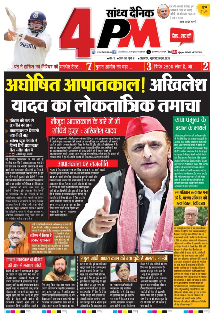 यूपी के पूर्व मुख्यमंत्री अखिलेश यादव ने कहा है कि 1975 के आपातकाल पर चर्चा करने से पहले मौजूदा आपातकाल जैसे हालातों पर बात कीजिए। आज अभिव्यक्ति की आज़ादी दबाई जा रही है, पत्रकार जेल में हैं, विपक्ष के नेता ईडी और सीबीआई की गिरफ्त में हैं। क्या यह आपातकाल नहीं है। अखिलेश यादव ने कहा कि घोषित और अघोषित दो तरह का आपातकाल होता है। आपातकाल की अगर चर्चा हो रही है तो इस समय जो आपातकाल चल रहा है। उसका ध्यान भी रखा जाना चाहिए। उन्होंने कहा कि कांग्रेस की स्थापना इटावा में हुई थी, जबकि भाजपा की विचारधारा अंग्रेजों की बनाई थी।