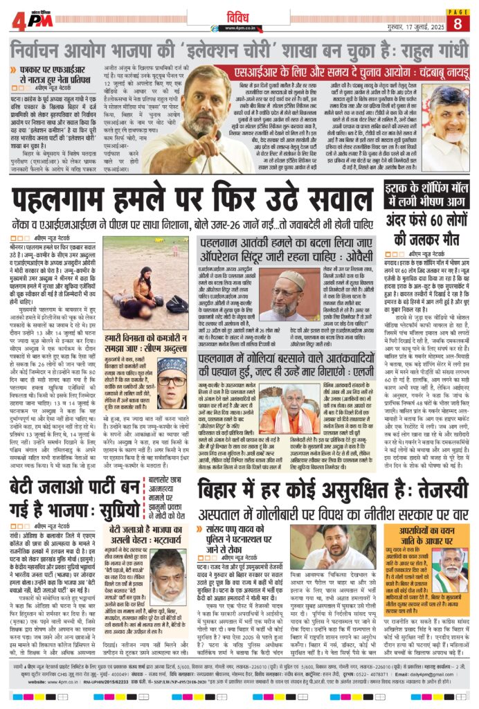 पटना। कांग्रेस के पूर्व अध्यक्ष राहुल गांधी ने एक वरिष्ठ पत्रकार के खिलाफ बिहार में दर्ज प्राथमिकी को लेकर बृहस्पतिवार को निर्वाचन आयोग पर निशाना साधा और सवाल किया कि यह क्या ‘इलेक्शन कमीशन’ है या फिर पूरी तरह भारतीय जनता पार्टी की ‘इलेक्शन चोरी’ शाखा बन चुका है।