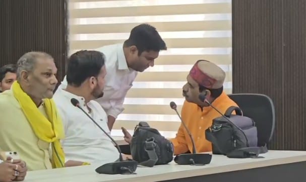 बीजेपी की प्रेस कॉन्फ्रेंस में गुटबाजी उजागर, कुर्सी को लेकर हुआ विवाद
