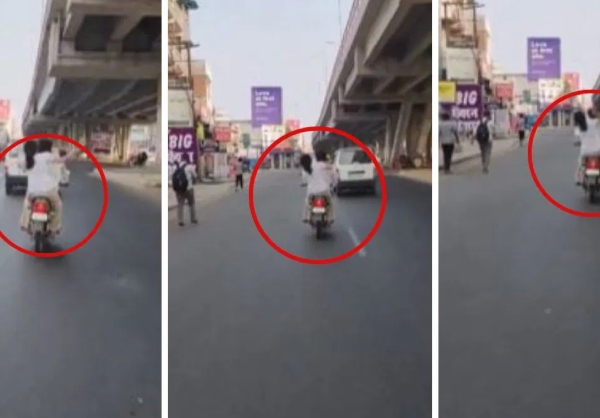 वीडियो में युवती के गुस्से में युवक को चप्पल से पीटने की घटना साफ दिख रही है. इस दौरान युवक बाइक चलाने में व्यस्त है.