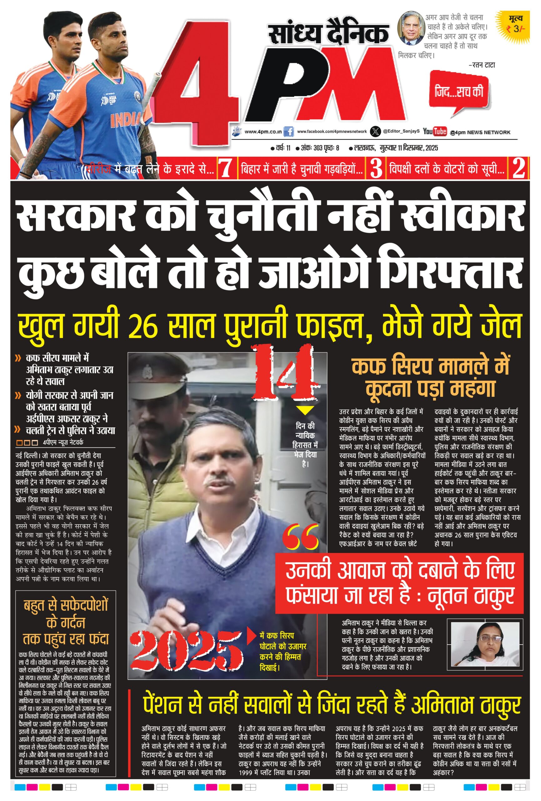 अमिताभ ठाकुर कोई साधारण अफसर नहीं थे। वो सिस्टम के खिलाफ खड़े होने वाले दुर्लभ लोगों में से एक हैं। जो रिटायरमेंट के बाद पेंशन से नहीं सवालों से जिंदा रहते हैं। लेकिन इस देश में सवाल पूछना सबसे महंगा शौक है। और जब सवाल कफ सिरप माफिया जैसे करोड़ों की मलाई खाने वाले नेटवर्क पर उठे तो उसकी कीमत पुरानी फाइलों में ब्याज सहित चुकानी पड़ती है। ठाकुर का अपराध यह नहीं कि उन्होंने 1999 में प्लॉट लिया था। उनका अपराध यह है कि उन्होंने 2025 में कफ सिरप घोटाले को उजागर करने की हिम्मत दिखाई। विपक्ष का दर्द भी यही है कि जिसे वह मुद्दा बनाना चाहता है सरकार उसे चुप कराने का तरीका ढूंढ लेती है। और सत्ता का दर्द यह है कि ठाकुर जैसे लोग हर बार अनकंफर्टेबल सच सामने रख देते हैं। आज की गिरफ्तारी लोकतंत्र के माथे पर एक बड़ा सवाल है कि क्या कफ सिरप में कोडीन अधिक था या सत्ता की नसों में अहंकार?