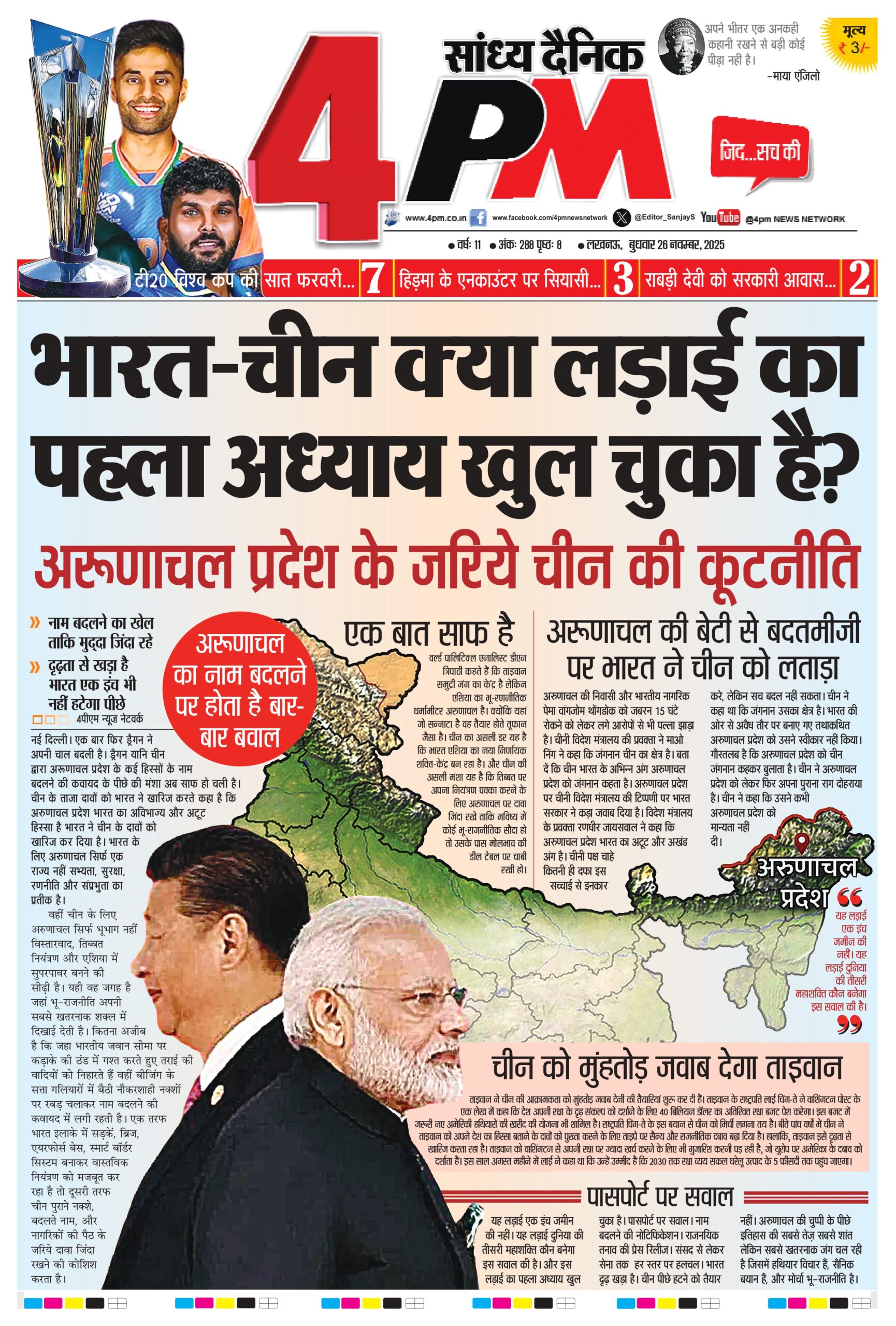 यह लड़ाई एक इंच जमीन की नहीं। यह लड़ाई दुनिया की तीसरी महाशक्ति कौन बनेगा इस सवाल की है। और इस लड़ाई का पहला अध्याय खुल चुका है। पासपोर्ट पर सवाल। नाम बदलने की नोटिफिकेशन। राजनयिक तनाव की प्रेस रिलीज। संसद से लेकर सेना तक हर स्तर पर हलचल। भारत दृढ़ खड़ा है। चीन पीछे हटने को तैयार नहीं। अरुणाचल की चुप्पी के पीछे इतिहास की सबसे तेज़ सबसे शांत लेकिन सबसे खतरनाक जंग चल रही है जिसमें हथियार विचार हैं, सैनिक बयान हैं, और मोर्चा भू-राजनीति है।