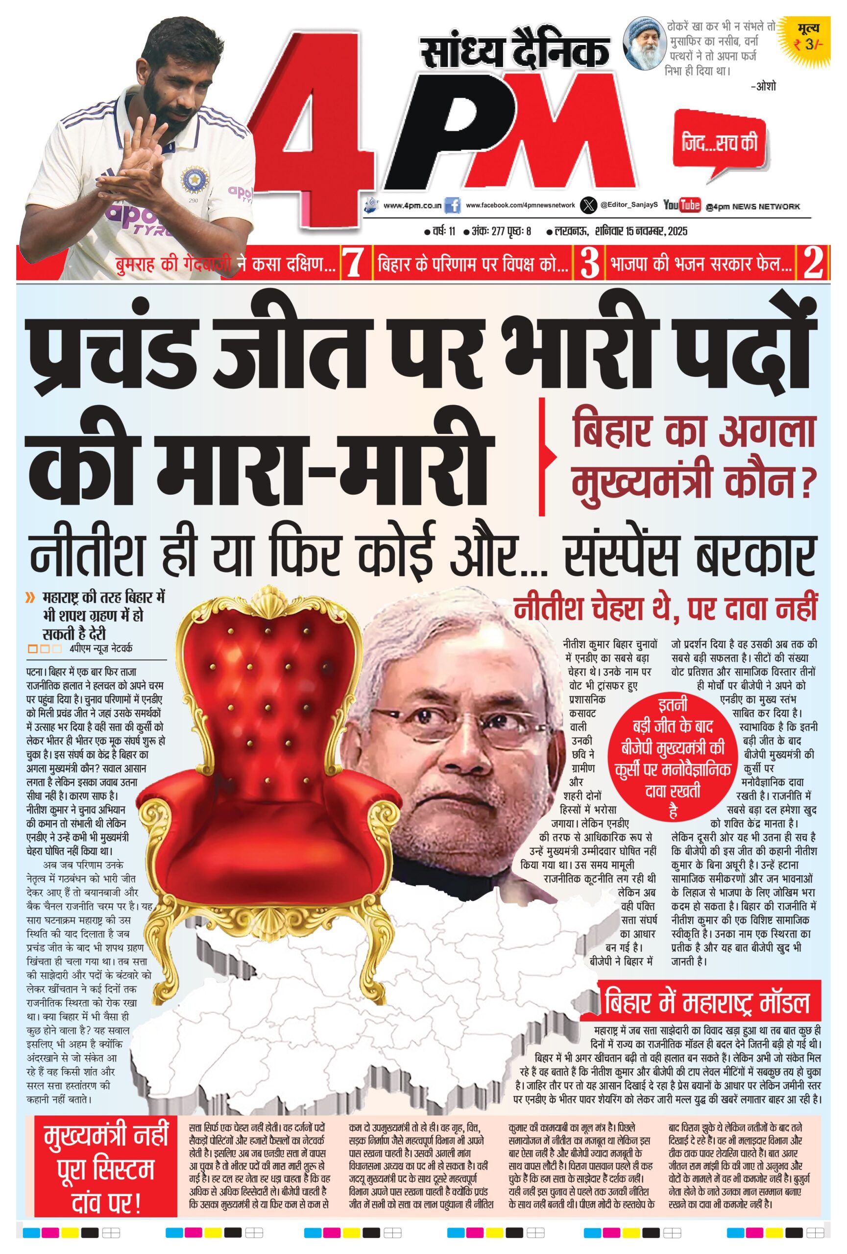 पटना। बिहार में एक बार फिर ताजा राजनीतिक हालात ने हलचल को अपने चरम पर पहुंचा दिया है। चुनाव परिणामों में एनडीए को मिली प्रचंड जीत ने जहां उसके समर्थकों में उत्साह भर दिया है वहीं सत्ता की कुर्सी को लेकर भीतर ही भीतर एक मूक संघर्ष शुरू हो चुका है। इस संघर्ष का केंद्र है बिहार का अगला मुख्यमंत्री कौन? सवाल आसान लगता है लेकिन इसका जवाब उतना सीधा नहीं है। कारण साफ है। नीतीश कुमार ने चुनाव अभियान की कमान तो संभाली थी लेकिन एनडीए ने उन्हें कभी भी मुख्यमंत्री चेहरा घोषित नहीं किया था। अब जब परिणाम उनके नेतृत्व में गठबंधन को भारी जीत देकर आए हैं तो बयानबाजी और बैक चैनल राजनीति चरम पर है। यह सारा घटनाक्रम महाराष्ट्र की उस स्थिति की याद दिलाता है जब प्रचंड जीत के बाद भी शपथ ग्रहण खिंचता ही चला गया था। तब सत्ता की साझेदारी और पदों के बंटवारे को लेकर खींचतान ने कई दिनों तक राजनीतिक स्थिरता को रोक रखा था। क्या बिहार में भी वैसा ही कुछ होने वाला है? यह सवाल इसलिए भी अहम है क्योंकि अंदरखाने से जो संकेत आ रहे हैं वह किसी शांत और सरल सत्ता हस्तांतरण की कहानी नहीं बताते।