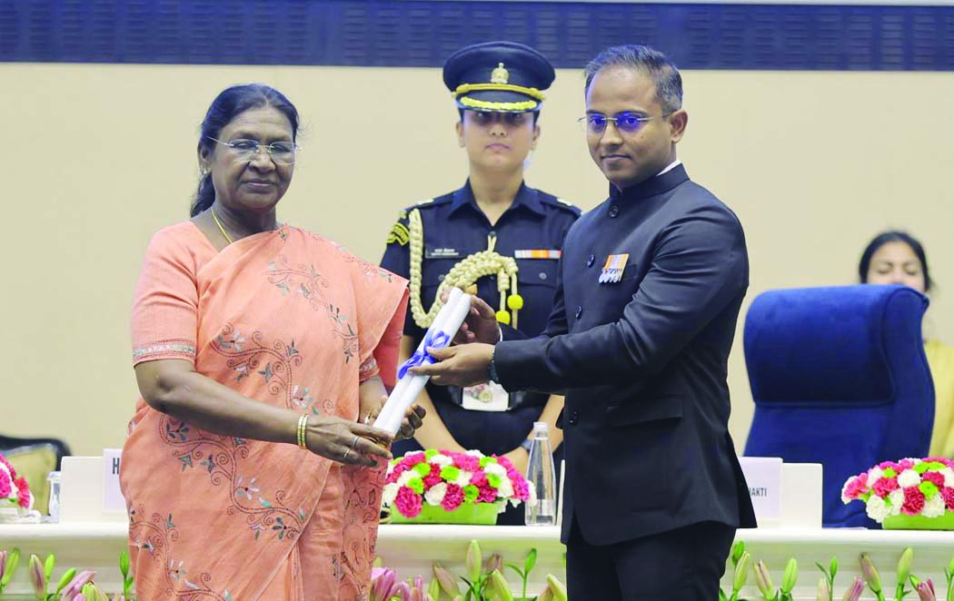 गोरखपुर। भारत की राष्ट्रपति द्रौपदी मुर्मू ने गोरखपुर में जन्मे आईएएस अधिकारी सिद्धार्थ शिव जायसवाल को मंगलवार को नई दिल्ली के विज्ञान भवन में आयोजित एक समारोह में लगातार तीसरे वर्ष उनकी उत्कृष्ट सेवाओं के लिए सम्मानित किया।