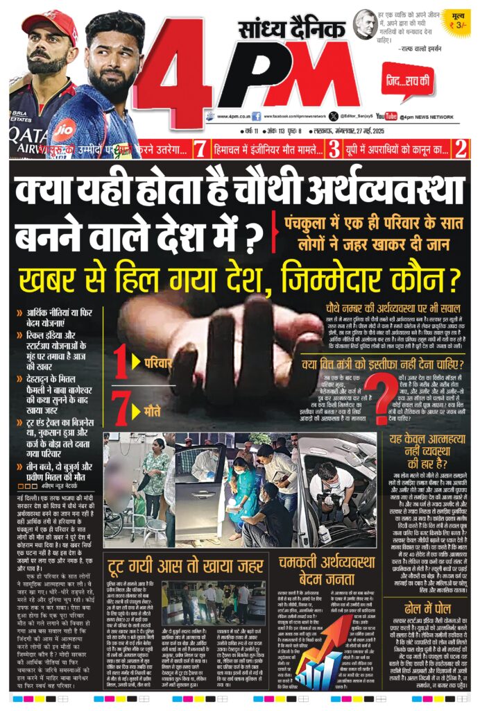 नई दिल्ली। एक तरफ भाजपा की मोदी सरकार देश को विश्व में चौथे नंबर की अर्थव्यवस्था बनने का जश्न मना रहीं है वहीं आर्थिक तंगी से हरियाणा के पंचकूला में एक ही परिवार के सात लोगों की मौत की खबर ने पूरे देश में कोहराम मचा दिया है। यह खबर सिर्फ एक घटना नहीं है यह इस देश के जख्मों पर लगा एक और नमक है, एक और घाव है। एक ही परिवार के सात लोगों ने सामूहिक आत्महत्या कर ली। वे जहर खा गए। धीरे-धीरे तड़पते रहे, मरते रहे और दुनिया चुप रही। कोई उफ्फ तक न कर सका। ऐसा क्या हुआ होगा कि एक पूरा परिवार मौत को गले लगाने को विवश हो गया अब बस सवाल यही है कि जिंदगी की आस में आत्महत्या करते लोगों की इन मौतों का जिम्मेदार कौन है? मोदी सरकार की आर्थिक नीतियां या फिर चमत्कार के जरिये समस्याओं को हल करने में माहिर बाबा बागेश्वर या फिर स्वयं वह परिवार।