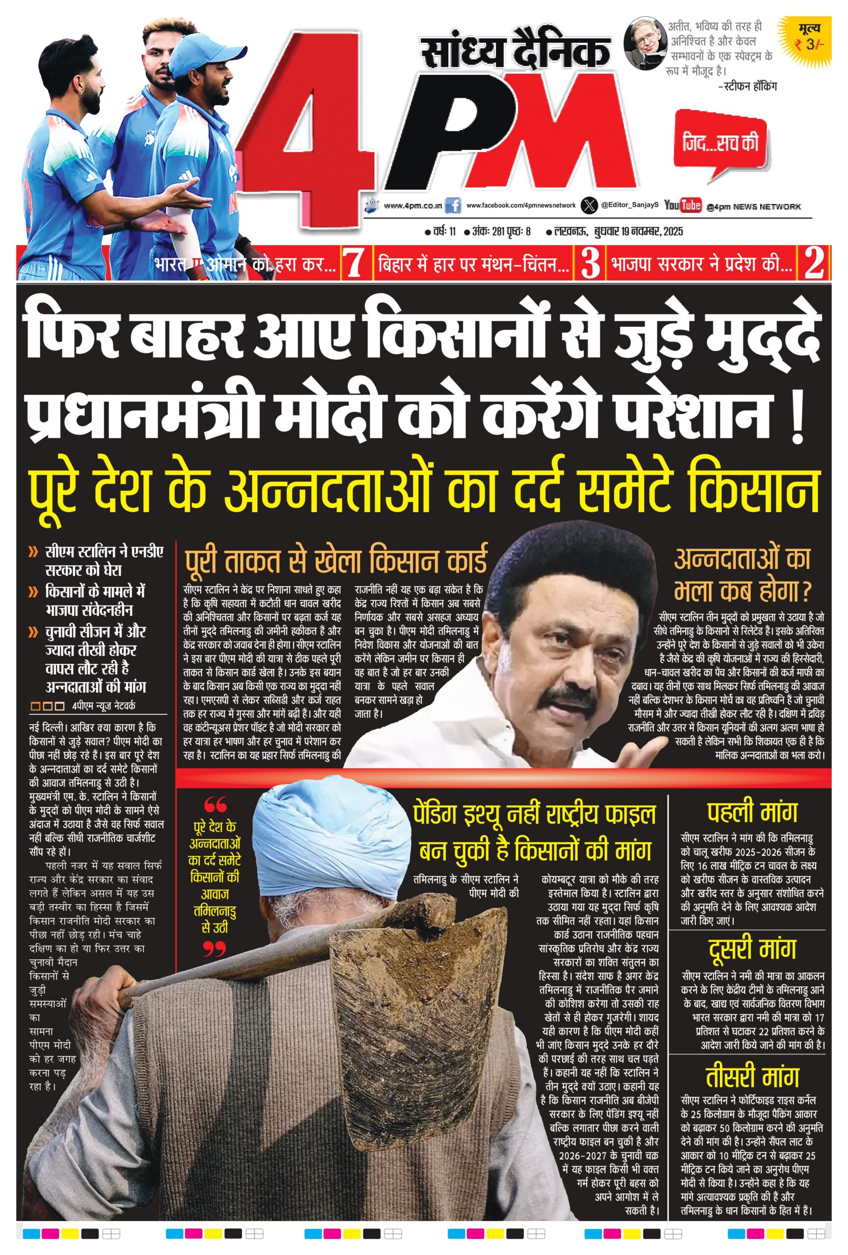 तमिलनाडु के सीएम स्टालिन ने पीएम मोदी की कोयम्बटूर यात्रा को मौके की तरह इस्तेमाल किया है। स्टालिन द्वारा उठाया गया यह मुद्दा सिर्फ कृषि तक सीमित नहीं रहता। यहां किसान कार्ड उठाना राजनीतिक पहचान सांस्कृतिक प्रतिरोध और केंद्र राज्य सरकारों का शक्ति संतुलन का हिस्सा है। संदेश साफ है अगर केंद्र तमिलनाडु में राजनीतिक पैर जमाने की कोशिश करेगा तो उसकी राह खेतों से ही होकर गुजरेगी। शायद यही कारण है कि पीएम मोदी कहीं भी जांए किसान मुद्दे उनके हर दौरे की परछाई की तरह साथ चल पड़ते हैं। कहानी यह नहीं कि स्टालिन ने तीन मुद्दे क्यों उठाए। कहानी यह है कि किसान राजनीति अब बीजेपी सरकार के लिए पेंडिंग इश्यू नहीं बल्कि लगातार पीछा करने वाली राष्ट्रीय फाइल बन चुकी है और 2026-2027 के चुनावी चक्र में यह फाइल किसी भी वक्त गर्म होकर पूरी बहस को अपने आगोश में ले सकती है।