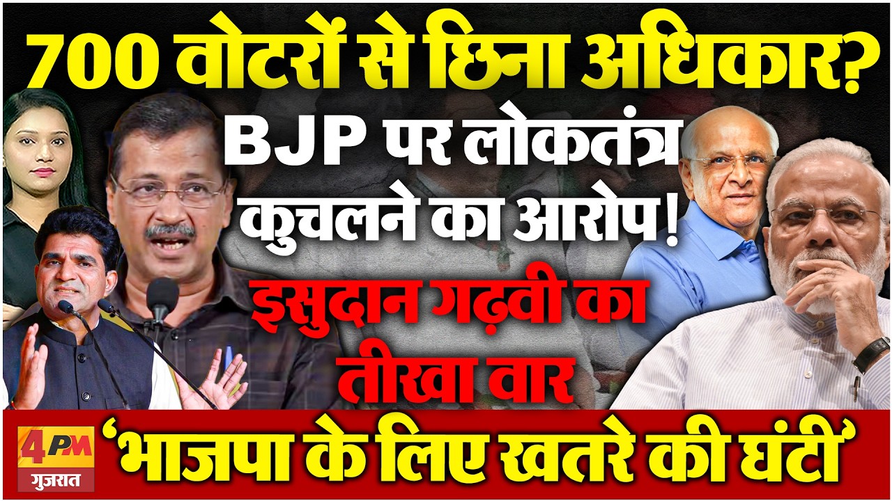 वहीं इस मुद्दे ने चुनावी पारदर्शिता और निष्पक्षता पर भी सवाल खड़े कर दिए हैं.. विपक्ष लगातार इस मामले की निष्पक्ष जांच की मांग कर रहा है.. जबकि बीजेपी की ओर से अभी तक इन आरोपों पर स्पष्ट प्रतिक्रिया नहीं आई है.. ऐसे में यह विवाद आने वाले दिनों में और बड़ा राजनीतिक तूफान खड़ा कर सकता है.. गुजरात में स्थानीय निकाय चुनाव 26 अप्रैल 2026 को होने वाले हैं.. इन चुनावों की तैयारियां जोरों पर चल रही हैं.. लेकिन मतदान से पहले ही राजनीतिक विवाद तेज हो गया है.. आम आदमी पार्टी के गुजरात प्रदेश अध्यक्ष इसुदान गढ़वी ने भाजपा पर गंभीर आरोप लगाया है.. और उन्होंने कहा कि भाजपा 700 वोटरों से उनके मतदान का अधिकार छीन रही है.. और इसे जश्न मना रही है..