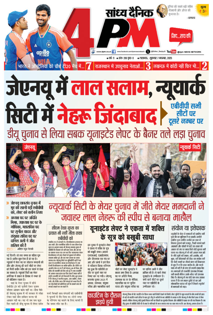 नई दिल्ली। तो क्या समय का पहिया घूम रहा है। प्रतीत कुछ ऐसा ही हो रहा है। न्यूयार्क में मेयर पद पर जोहरान ममदानी की जीत और जेएनयू की चारों सीटों पर लेफ्ट को मिली क्लीन स्वीप को इस संदर्भ से देखा जा सकता है। न्यूयार्क सिटी का मेयर अमेरिका में ताकत के हिसाब से नम्बर दो की पोजिशन रखता है। वहां के मेयर चुनाव में सीधे प्रेसीडेंट ट्रंप को चुनौती देकर चुनाव जीतना आसान काम नहीं था। ठीक वैसे ही जेएनयू चुनाव में भी सरकार से लोहा लेकर वहां जीत हासिल करना भी आसान नही था। वह भी तब जब कुछ दिन पहले ही डीयू चुनाव में लेफ्ट समेत सभी विपक्षी छात्र संगठनों को एबीवीपी ने चुनावों में रौंद दिया था। दोनो जगह के परिणाम यह बताने के लिए काफी है कि समय लौट रहा है।