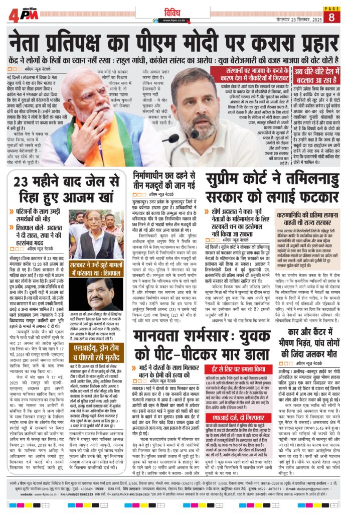 कांग्रेस नेता ने आगे कहा कि संस्थानों पर भाजपा के कब्ज़े के कारण देश में नौकरियों में गिरावट, भर्ती प्रक्रियाएँ चरमरा रही हैं और युवाओं का भविष्य अंधकार में जा रहा है। गांधी ने अपनी पोस्ट में लिखा है कि देश का युवा कड़ी मेहनत करता है, सपने देखता है और अपने भविष्य के लिए संघर्ष करता है। लेकिन श्री मोदी केवल अपने प्रचार, मशहूर हस्तियों से अपनी प्रशंसा करवाने और अरबपतियों के मुनाफ़े में व्यस्त हैं। युवाओं की उम्मीदों को तोडऩा और उन्हें हताश करना इस सरकार की पहचान बन गई है।