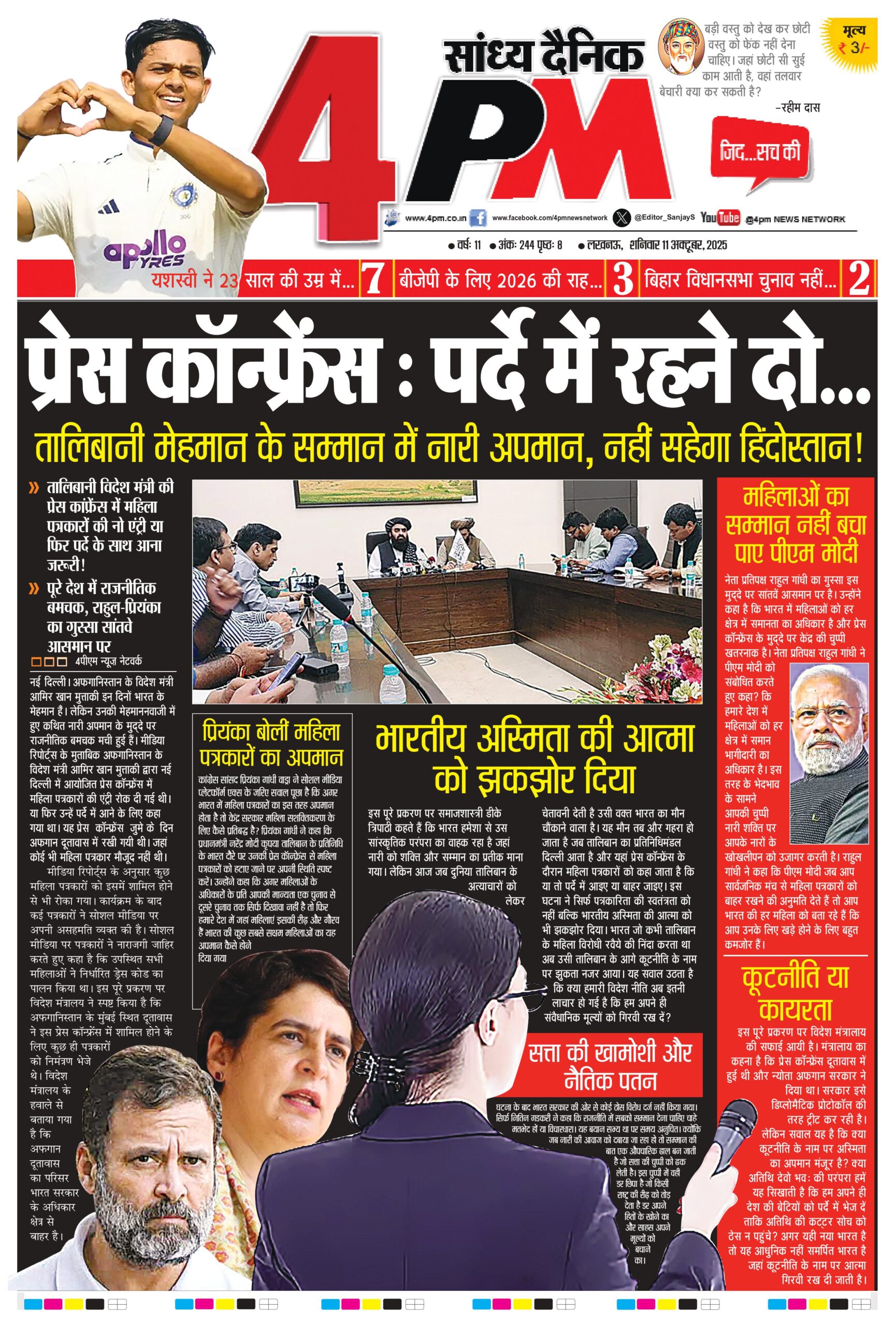 नई दिल्ली। अफगानिस्तान के विदेश मंत्री आमिर खान मुत्ताकी इन दिनों भारत के मेहमान है। लेकिन उनकी मेहमाननवाजी में हुए कथित नारी अपमान के मुद्दे पर राजनीतिक बमचक मची हुई हैं। मीडिया रिपोर्ट्स के मुताबिक अफगानिस्तान के विदेश मंत्री आमिर खान मुत्ताकी द्वारा नई दिल्ली में आयोजित प्रेस कॉन्फ्रेंस में महिला पत्रकारों की एंट्री रोक दी गई थी। या फिर उन्हें पर्दे में आने के लिए कहा गया था। यह प्रेस कॉन्फ्रेंस जुमे के दिन अफगान दूतावास में रखी गयी थी। जहां कोई भी महिला पत्रकार मौजूद नहीं थी।