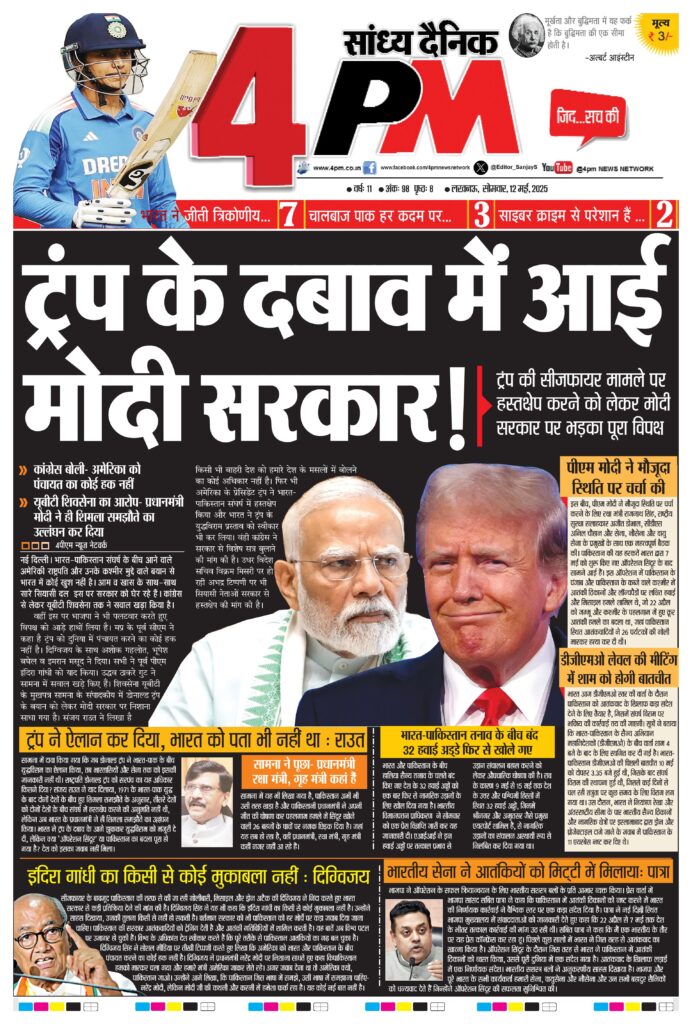 सामना में दावा किया गया कि जब डोनाल्ड ट्रंप ने भारत-पाक के बीच युद्धविराम का ऐलान किया, तब भारतासियों और सेना तक को इसकी जानकारी नहीं थी। राष्टï्रपति डोनाल्ड ट्रंप को सरपंच का यह अधिकार किसने दिया? संजय राउत ने याद दिलाया, 1971 के भारत-पाक युद्ध के बाद दोनों देशों के बीच हुए शिमला समझौते के अनुसार, तीसरे देशों को दोनों देशों के बीच संघर्ष में हस्तक्षेप करने की अनुमति नहीं थी, लेकिन अब भारत के प्रधानमंत्री ने ही शिमला समझौते का उल्लंघन किया। भारत ने ट्रंप के दबाव के आगे झुककर युद्धविराम को मंजूरी दे दी, लेकिन क्या ‘ऑपरेशन सिंदूर’ या पाकिस्तान का बदला पूरा हो गया है? देश को इसका जवाब नहीं मिला।
