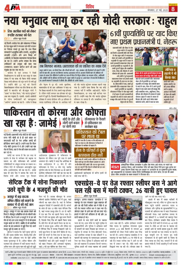 नई दिल्ली। प्रधानमंत्री मोदी और विपक्ष के नेता राहुल गांधी ने जवाहरलाल नेहरू को उनकी 61वीं पुण्यतिथि पर श्रद्धांजलि दी। राहुल गांधी ने भारत के पहले प्रधानमंत्री जवाहरलाल नेहरू को उनकी पुण्यतिथि पर श्रद्धांजलि दी और उनके दूरदर्शी नेतृत्व और सामाजिक न्याय, शिक्षा और लोकतंत्र में उनके योगदान की प्रशंसा की। प्रधानमंत्री नरेंद्र मोदी ने पूर्व प्रधानमंत्री जवाहरलाल नेहरू को उनकी जयंती पर श्रद्धांजलि दी। एक्स पर एक पोस्ट में, पीएम मोदी ने कहा, हमारे पूर्व प्रधानमंत्री पंडित जवाहरलाल नेहरू को उनकी पुण्यतिथि पर श्रद्धांजलि। लोकसभा में विपक्ष के नेता राहुल गांधी ने भी भारत के पहले प्रधानमंत्री को श्रद्धांजलि दी। गांधी ने स्वतंत्र भारत की मजबूत नींव रखने में नेहरू के दूरदर्शी नेतृत्व को याद किया।
