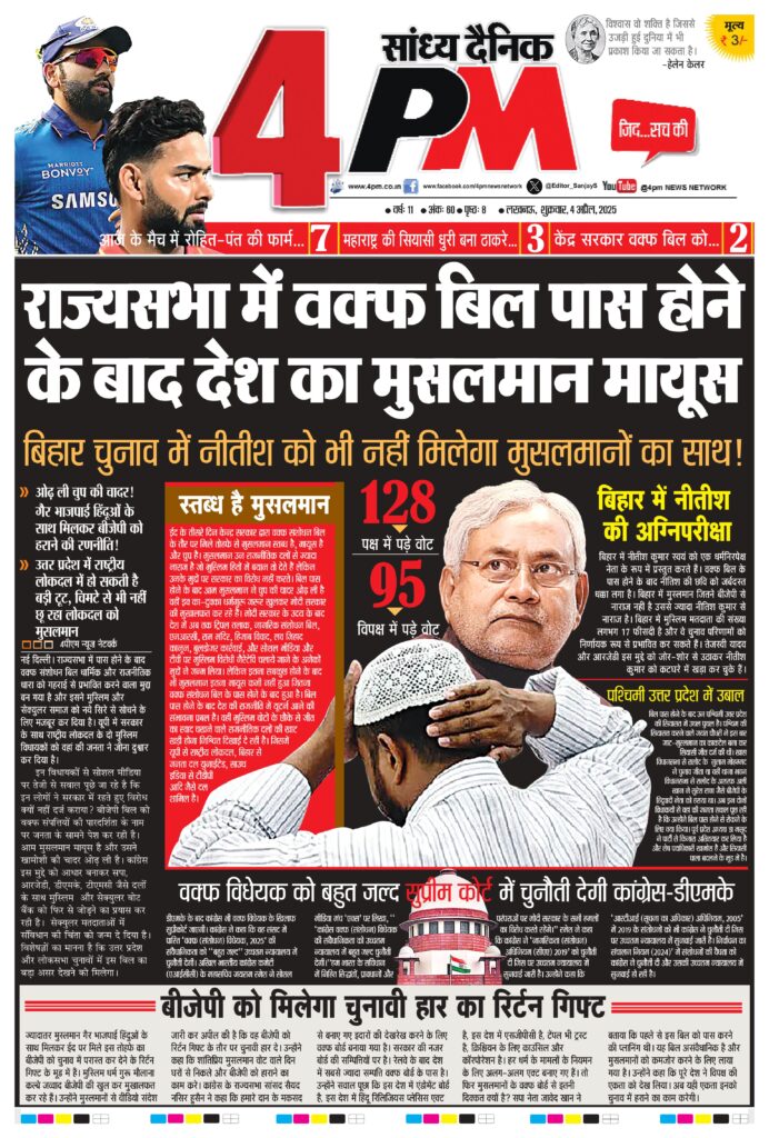 ईद के तीसरे दिन केन्द्र सरकार द्वारा वक्फ संशोधन बिल के तौर पर मिले तोहफे से मुसलमान स्तब्ध है, मायूस है और चुप है। मुसलमान उन राजनीतिक दलों से ज्यादा नाराज है जो मुस्लिम हितों में बयान तो देते हैं लेकिन उनके मुद्दों पर सरकार का विरोध नहीं करते। बिल पास होने के बाद आम मुसलमान ने चुप की चादर ओढ़ ली है वहीं इक्का—दुक्का धर्मगुरू जरूर खुलकर मोदी सरकार की मुखालफत कर रहे हैं। मोदी सरकार के उदय के बाद देश में अब तक ट्रिपल तलाक, नागरिक संशोधन बिल, एनआरसी, राम मंदिर, हिजाब विवाद, लव जिहाद कानून, बुलडोजर कार्रवाई, और सोशल मीडिया और टीवी पर मुस्लिम विरोधी नैरेटेवि चलाये जाने के अनेकों मुद्दों ने जन्म लिया। लेकिन इतना सबकुछ होने के बाद भी मुसलमान इतना मायूस कभी नहीं हुआ जितना वक्फ संशोधन बिल के पास होने के बाद हुआ है। बिल पास होने के बाद देश की राजनीति में यूटर्न आने की संभावना प्रबल है। वहीं मुस्लिम वोटों के छौके से जीत का स्वाद चखने वाले राजनीतिक दलों की खाट खड़ी होना निश्चित दिखाई दे रही है। जिसमें यूपी से राष्ट्रीय लोकदल, बिहार से जनता दल युनाईटेड, साउथ इंडिया से टीडीपी आदि जैसे दल शामिल है।
