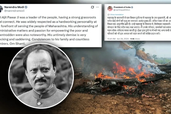 भारत की राष्ट्रपति द्रौपदी मुर्मू के ऑफिस ने एक्स पर लिखा, “महाराष्ट्र के बारामती में एक विमान दुर्घटना में महाराष्ट्र के उप मुख्यमंत्री, श्री अजित पवार समेत कई लोगों की मृत्यु का समाचार अत्यंत दुखद है. अजित पवार जी का असामयिक निधन एक अपूरणीय क्षति है. उन्हें महाराष्ट्र के विकास में, विशेषकर सहकारी क्षेत्र में, विशेष योगदान के लिए सदैव याद रखा जाएगा. मैं उनके परिवार, समर्थकों एवं प्रशंसकों के प्रति गहन शोक-संवेदना व्यक्त करती हूं. ईश्वर इस दुर्घटना में मारे गए अन्य सभी लोगों के परिवारों को भी इस आघात को सहन करने की शक्ति प्रदान करें.