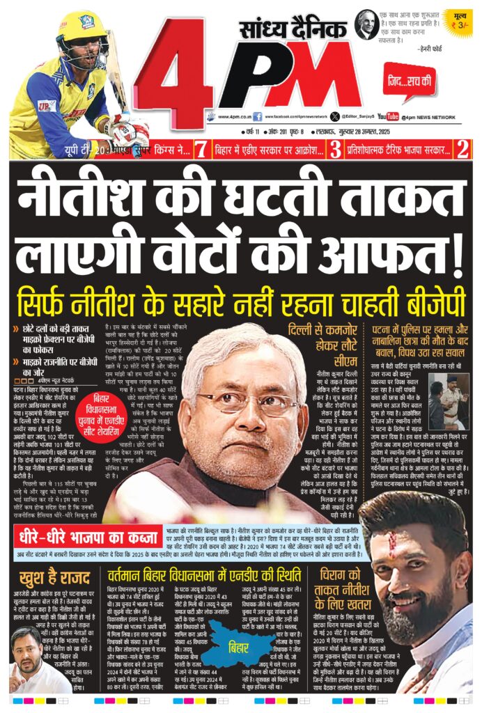 भाजपा की रणनीति बिल्कुल साफ है। नीतीश कुमार को कमजोर कर वह धीरे-धीरे बिहार की राजनीति पर अपनी पूरी पकड़ बनाना चाहती है। बीजेपी ने इस? दिशा में इस बार मजबूत कदम भी उठाया है और यह सीट शेयरिंग उसी कदम की आहट है। 2020 में भाजपा 74 सीटें जीतकर सबसे बड़ी पार्टी बनी थी। अब सीट बंटवारे में बराबरी दिखाकर उसने संदेश दे दिया कि 2025 के बाद एनडीए का असली चेहरा भाजपा होगी। मौजूदा स्थिति नीतीश को हाशिए पर धकेलने की ओर इशारा करती है।