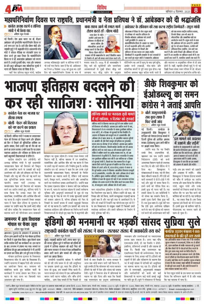 वहीं नेता प्रतिपक्ष राहुल गांधी, कांग्रेस अध्यक्ष मल्लिकार्जुन खरगे व सोनिया गांधी ने भी उन्हें याद किया। बता दें कि डॉ. आंबेडकर का निधन 6 दिसंबर 1956 को हुआ था। इसी दिन को महापरिनिर्वाण दिवस के रूप में मनाया जाता है। 1956 में ही बाबासाहेब ने हिंदू धर्म की कुरीतियों और सामाजिक असमानताओं से दुखी होकर बौद्ध धर्म अपनाया था। बौद्ध दर्शन के अनुसार परिनिर्वाण का अर्थ है मृत्यु के बाद पूर्ण मुक्ति, अर्थात सभी इच्छाओं, मोह-माया और सांसारिक बंधनों से पूरी तरह मुक्त होना। यह सर्वोच्च अवस्था बहुत कठिन मानी जाती है और सदाचार व अनुशासित जीवन से ही प्राप्त होती है। वहीं, राष्ट्रपति द्रौपदी मुर्मू ने भी नई दिल्ली स्थित संसद भवन परिसर में डॉ. बीआर अंबेडकर की प्रतिमा पर पुष्पांजलि अर्पित की।