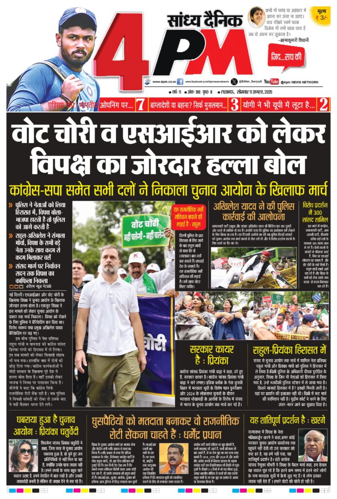 नई दिल्ली। एसआईआर और वोट चोरी के खिलाफ विपक्ष ने चुनाव आयोग के खिलाफ जोरदार हल्ला बोला है। एकजुट विपक्ष ने इस मामले को लेकर चुनाव आयोग के दफ्तर तक मार्च निकाला। विपक्ष को रोकने के लिए पुलिस ने बैरिकेडिंग कर दिया था। विरोध स्वरूप सपा प्रमुख अखिलेश यादव बैरिकेडिंग पर चढ़ गए। इस बीच पुलिस ने नेता प्रतिपक्ष राहुल गांधी व वायनाड की कांग्रेस सांसद प्रियंका गांधी को हिरासत में ले लिया। इन सब मामले को लेकर सियासी संग्राम भी मच गया। हालांकि बाद में दोनों को छोड़ दिया गया। कांग्र्रेस कार्यकर्ताओं ने मोदी सरकार के खिलाफ पूरे देश मे हल्ला बोल दिया है। वहीं इसको लेकर भाजपा ने विपक्ष पर पलटवार किया है। बीजेपी ने कहा कि कांग्र्रेस सिर्फ राजनीतिक रोटी सेंक रही है। जब पुलिस ने विपक्षी सांसदों को रोका तो उसके बाद वे वहीं बैठकर धरना देने लगे।