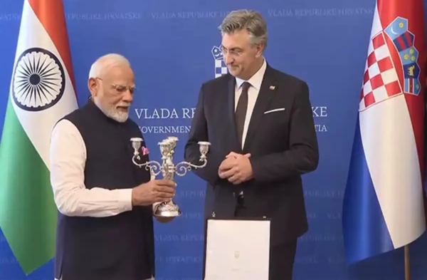 पीएम मोदी ने क्रोएशिया के प्रधानमंत्री प्लेंकोविच को राजस्थान की पारंपरिक कारगारी का एक सुंदर उपहार भेंट में दिया. राजस्थान का यह सिल्वर कैंडल स्टैंड इस क्षेत्र की पारंपरिक धातु कला का एक सुंदर उदाहरण है. इसे कुशल कारीगरों के हाथों से बनाया गया है. इसमें सदियों पुरानी डिजाइन और तकनीकों का इस्तेमाल किया गया है. इसमें बारीक फूल पत्तियां और ज्यामितीय डिजाइन है. इसका सुंदर आकार और बढ़िया पैटर्न इसे एक शाही और एक अलग रूप देते हैं. इसमें बनाए गए डिजाइन अक्सर महलों या मंदिरों से ली गई डिजाइन पर बनाए जाते हैं. राजस्थान में विशेषकर उदयपुर और जयपुर जैसे शहर अपनी चांदी की शिल्पकला के लिए प्रसिद्ध हैं.