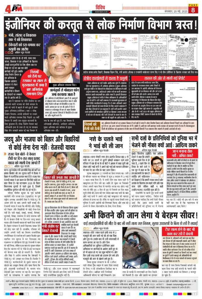 प्रदेश के राज्य मंत्री मयंकेश्वर शरण सिंह, कांग्रेस के राज्यसभा सांसद प्रमोद तिवारी ने इस भ्रष्टïाचार के आरोपी अभियंता की शिकायत मुख्यमंत्री को पत्र लिखकर की और उसे हटाने की भी मांग की। इसके अलावा राज्य मंत्री बलदेव सिंह औलख व भाजपा के कटरा शाहजहांपुर के विधायक वीर विक्रम ङ्क्षसह प्रिंस प्रमुख अभियंता को पत्र लिखकर रामनाथ सिंह को हटाने का अनुरोध किया था। इन सब पत्रों का संज्ञान लेकर यूपी शासन के अनुसचिव की ओर से भी 7 मई 2025 को प्रमुख अभियंता को जांच कराकर रिर्पोर्ट शासन में भेजने के निर्र्देश दिए गए हैं।