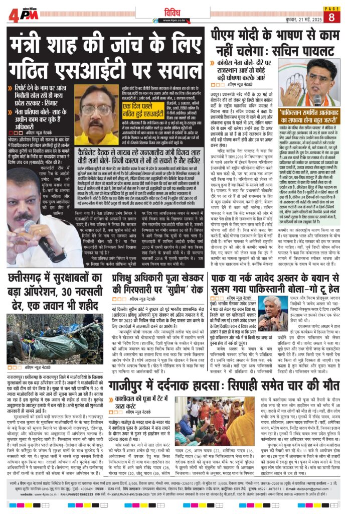 कर्नल सोफिया कुरैशी को लेकर दिए गए विवादित बयान के बाद से प्रदेश के जनजातीय कार्य मंत्री विजय शाह की मुश्किलें कम होने का नाम नहीं ली रही हैं। देवी अहिल्याबाई होलकर की जयंती पर इंदौर के ऐतिहासिक राजवाड़ा में आयोजित कैबिनेट बैठक में सभी मंत्री मौजूद रहे, लेकिन विजय शाह अनुपस्थिति रहे। कैबिनेट बैठक में उनकी गैरमौजूदगी को लेकर उठे सवालों पर प्रदेश भाजपा अध्यक्ष वीडी शर्मा ने कहा कि कई बार मंत्री व्यक्तिगत कारणों से बैठक में शामिल नहीं हो पाते हैं, ऐसा पहले भी होता रहा है। शाह की अनुपस्थिति का यही एक संभावित कारण हो सकता है। वहीं, शाह को लेकर प्रतिक्रिया देते हुए शर्मा ने कहा कि संबंधित मामला अब सर्वोच्च न्यायालय में विचाराधीन है। कोर्ट के निर्देश पर एक विशेष जांच टीम (एसआईटी) गठित कर दी गई है। सुप्रीम कोर्ट द्वारा तय की गई समय-सीमा में जांच रिपोर्ट प्रस्तुत की जाएगी और सरकार कोर्ट के आदेशों के अनुसार ही कार्यवाही करेगी।