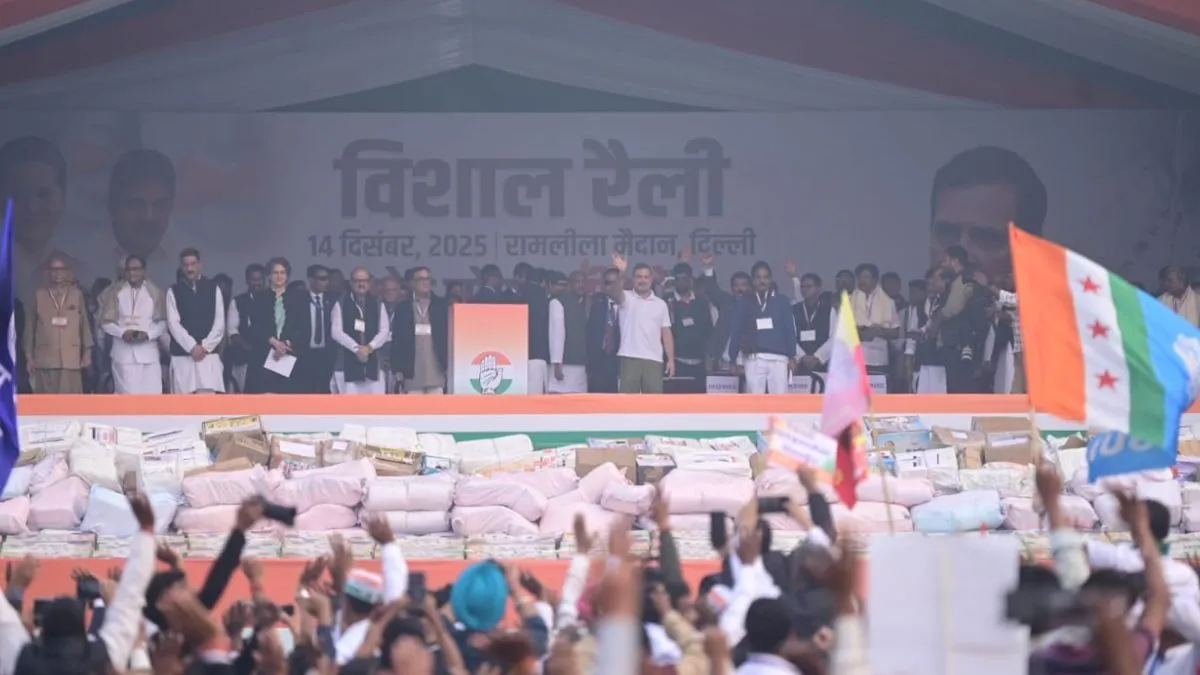 दिल्ली के रामलीला मैदान में वोटचोरी के खिलाफ हो रही महा रैली में जहां एक ओर न सिर्फ भरे मंच से हजारों लाइफ कैमरों के सामने राहुल गांधी ने आरएसएस चीफ मोहन भागवत और चीफ इलेक्शन कमिशनर ज्ञानेश कुमार को खुली चेतावनी दी है तो वहीं दूसरी ओर रामलीला मैदान में कैदी नंबर 420 की तरह ज्ञानेश कुमार के पेश होने पर हड़कंप मचा गया है।